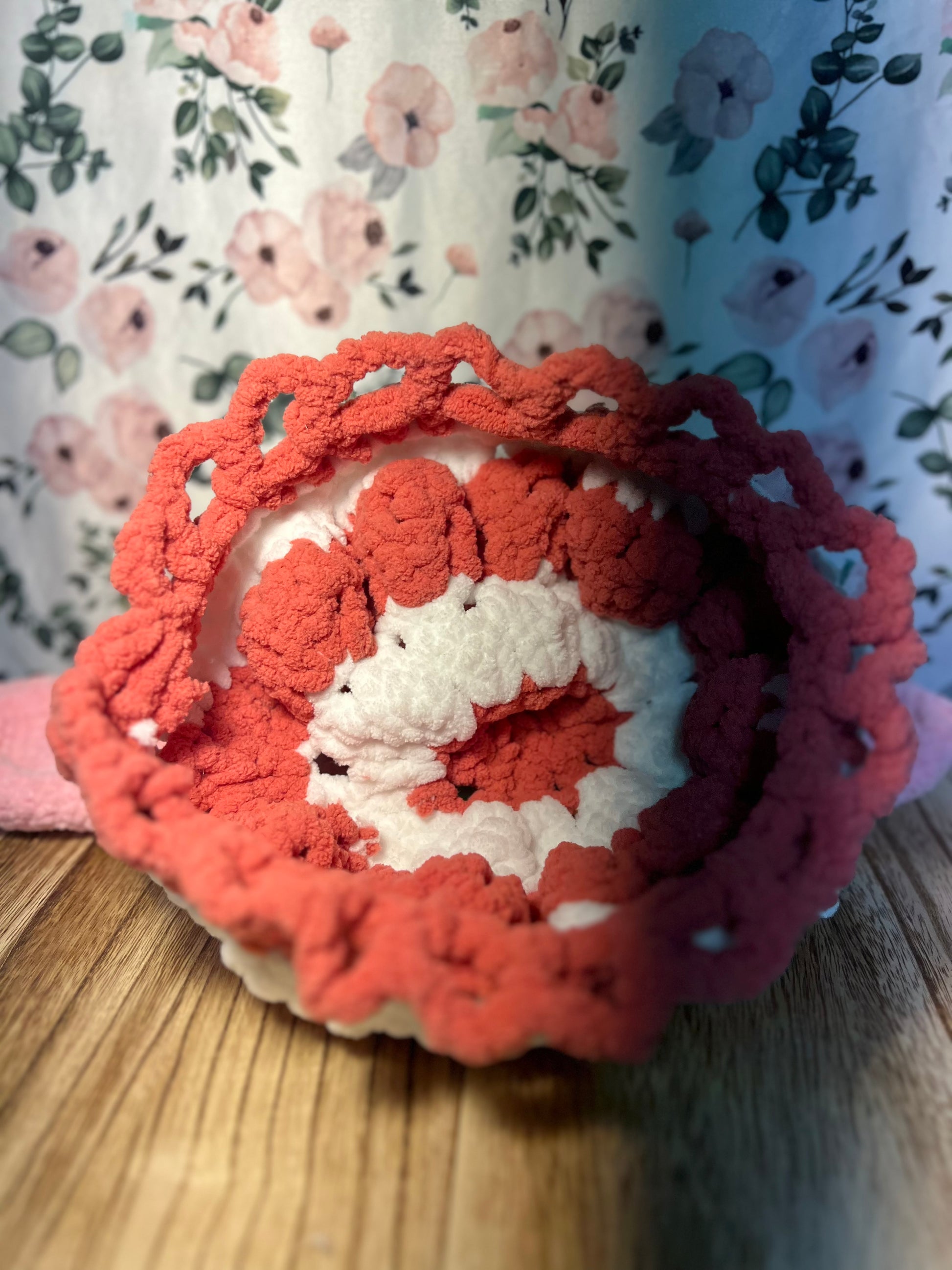 Crochet bunny lovey, available as shown only at this time, approximate size- 12" wide, 10" long, 8.5" length per ear, 6.8 oz