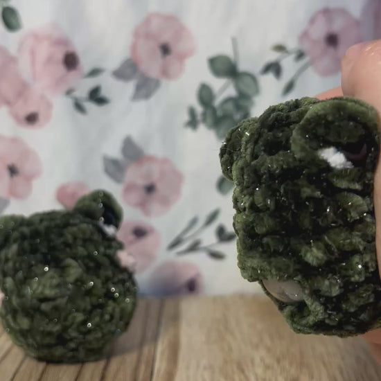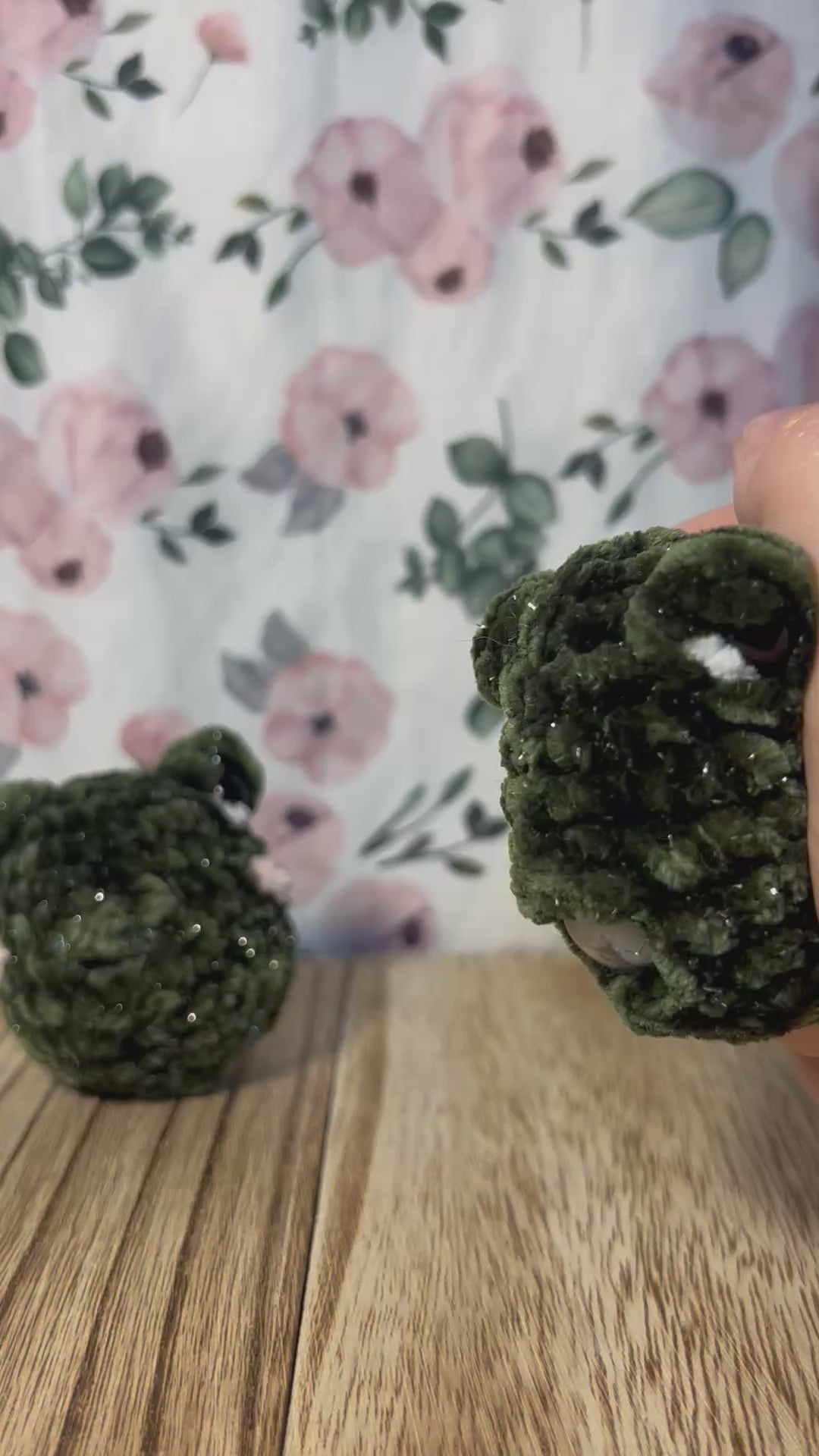 Crochet bubble frog head fidget toy, as shown, may vary slightly. Polyester, Approximate size- 3"x2.5"
