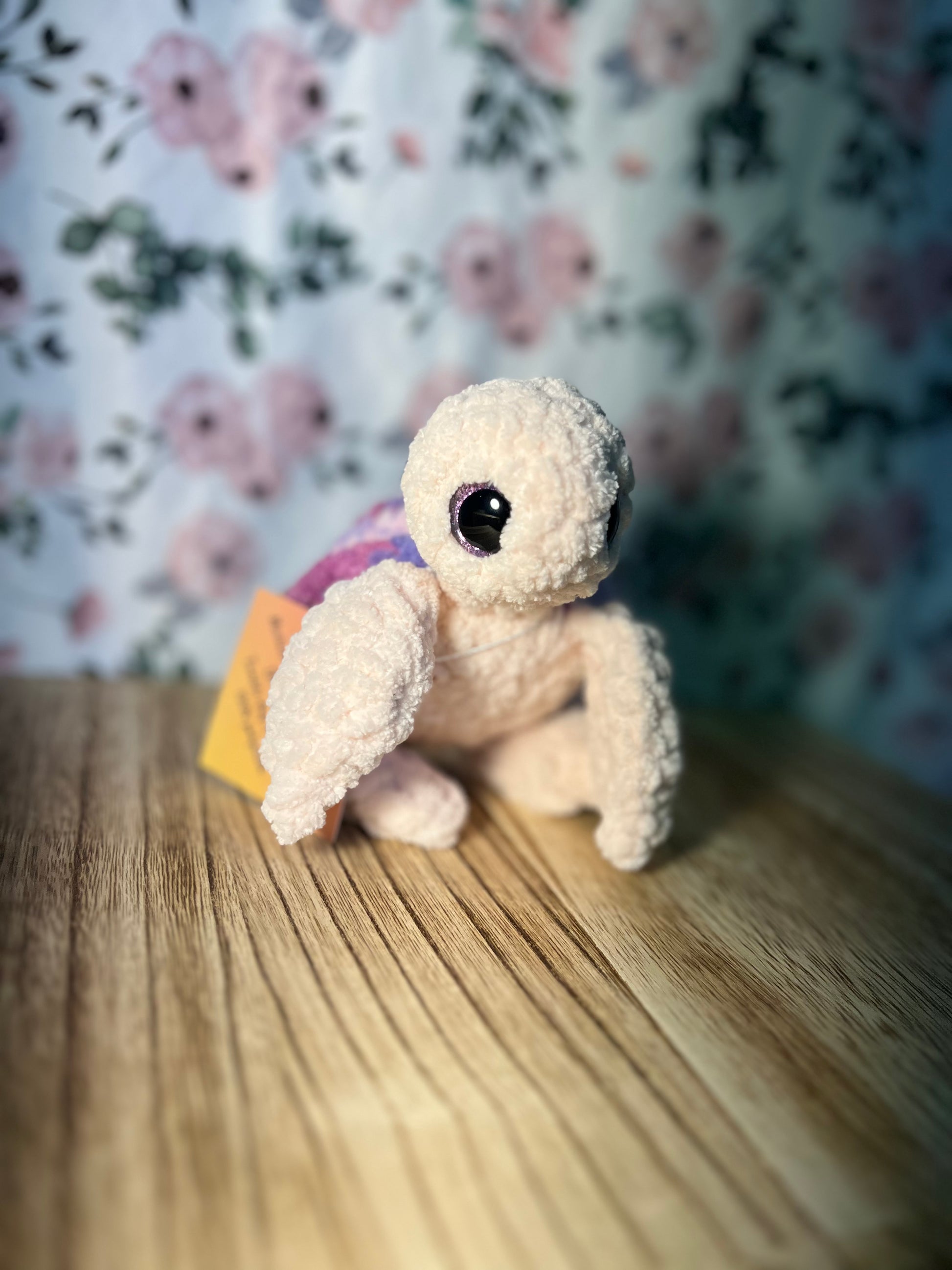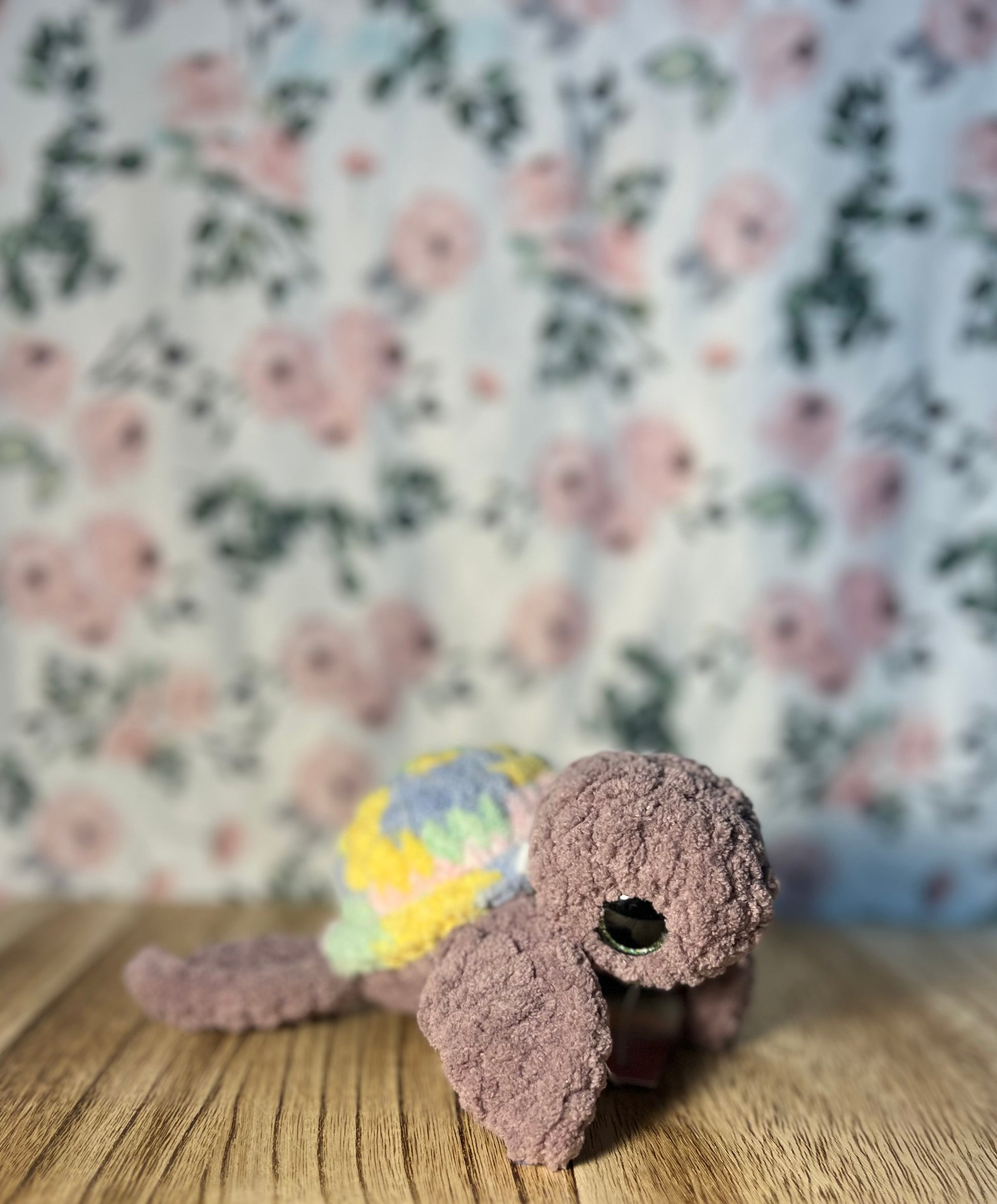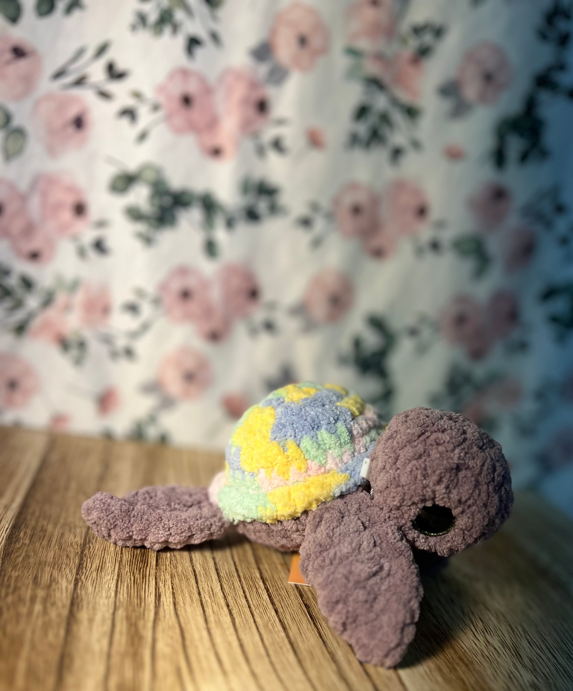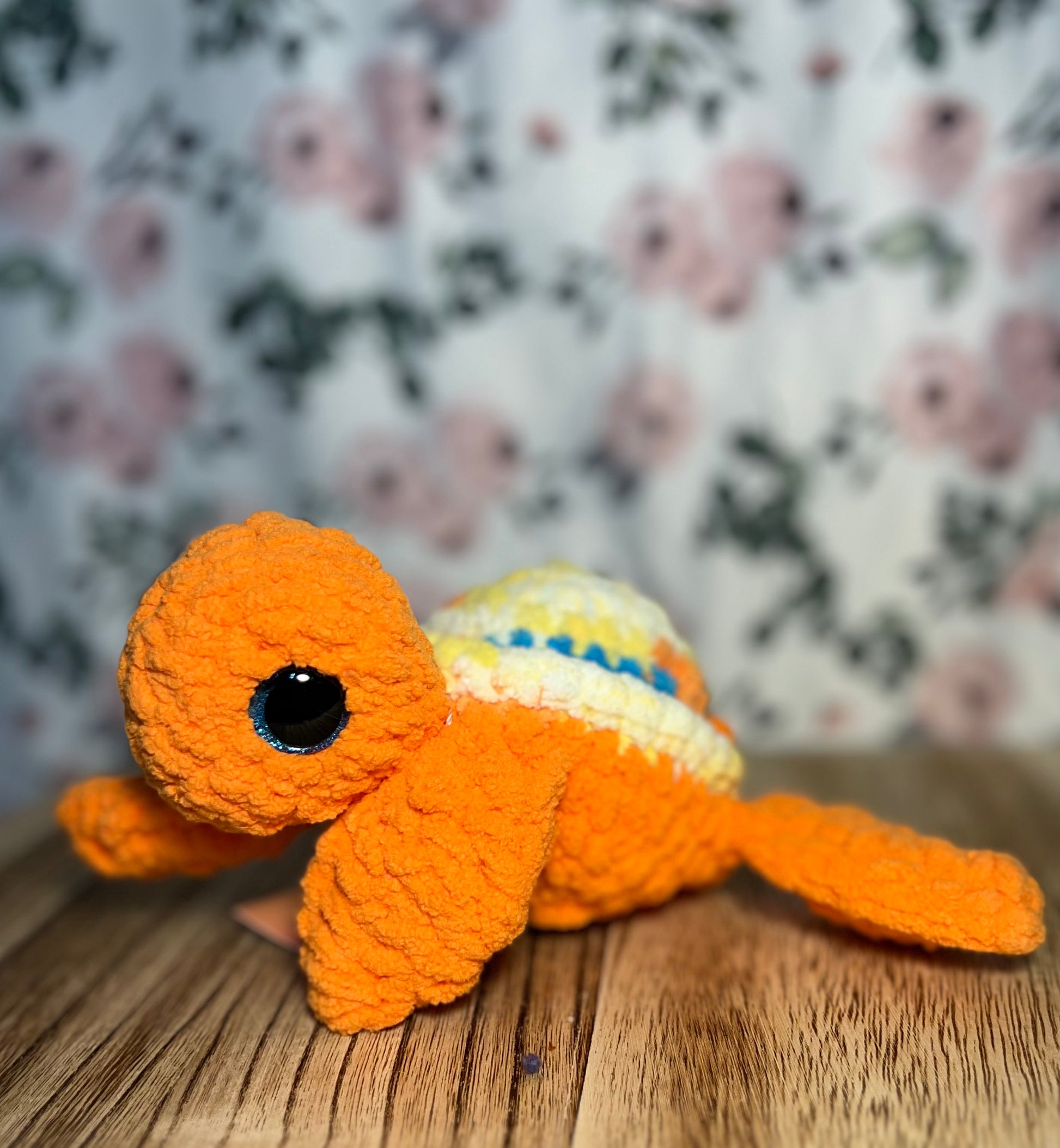 Crochet sea turtles, available in a variety of colors and custom, selected at random unless otherwise noted. Polyester, approximate size- 8" long, 4" wide (shell) 7" leg-leg, 3 oz